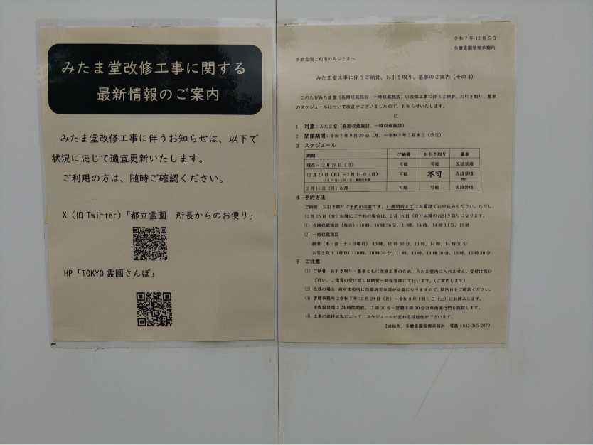 都立多磨霊園ではみたま堂の改修工事を行っています。